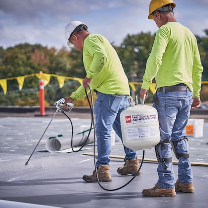 EverGuard® TPO Quick Spray Adhesive LV50 is a low VOC, solvent-based, sprayable, contact adhesive useful for bonding smooth TPO membranes to various substrates.